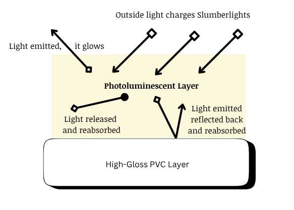 This allows Slumberlights products to glow very intensely for about 15 minutes and continue to glow for over 10 hours.